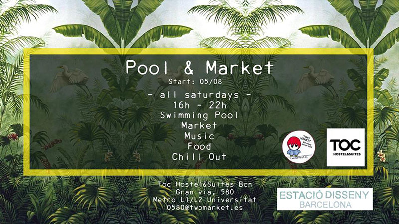 Two Market celebra este verano con una edición del mercado especial, 0580 Pool & Market. Todos los sábados podrás disfrutar de una tarde en el mercado, con piscina, música, comida, juegos, talleres... en TOC Hostel & Suites. Todo repartido en dos espacios: zona interior y exterior.